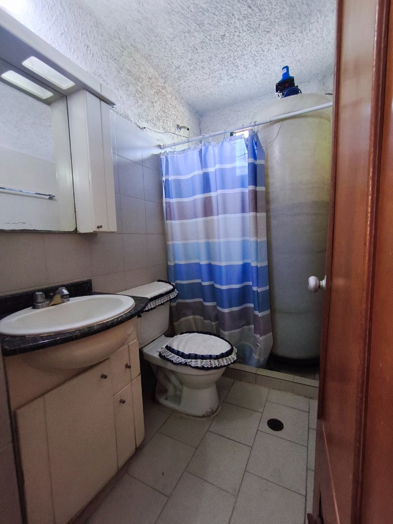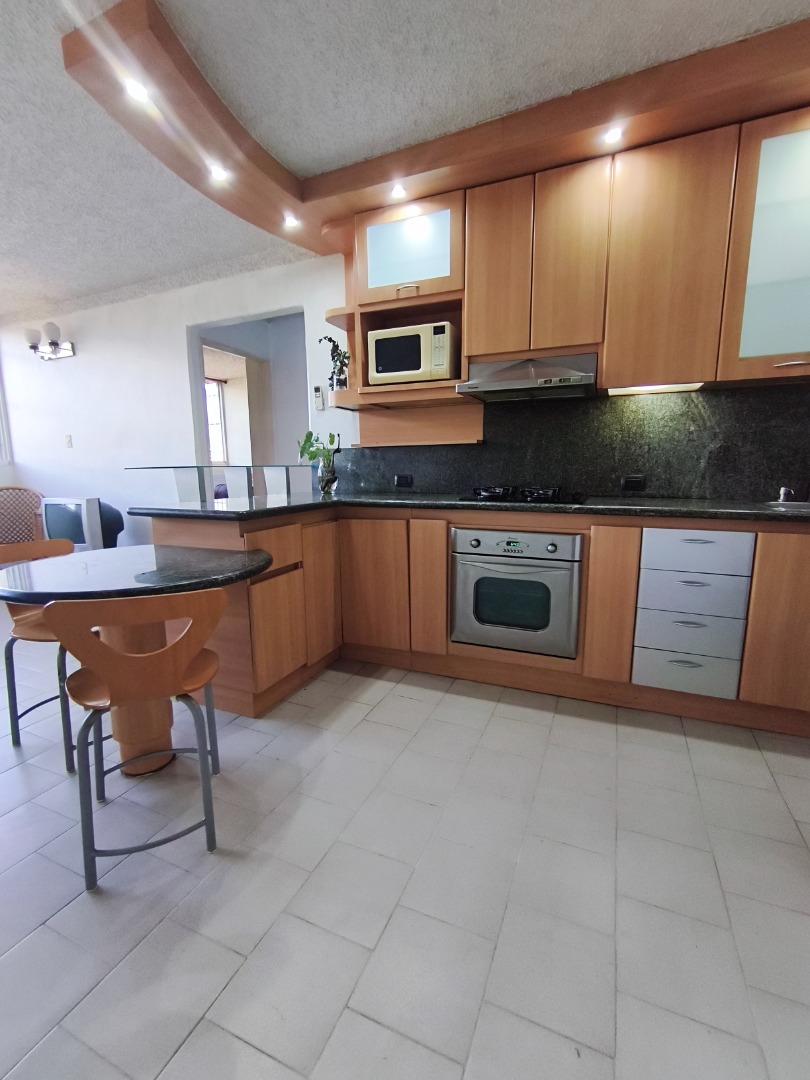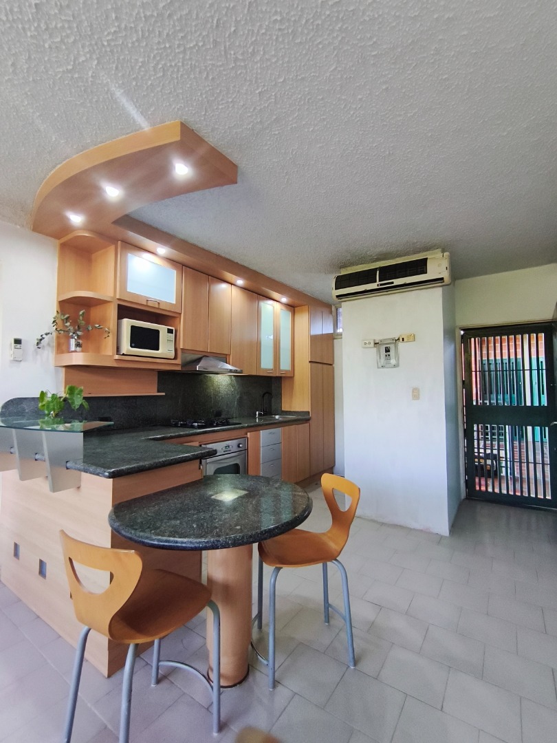 Cocina de tope de 4 hornillas, horno eléctrico y campana marca tecnolam, horno microondas general eléctric, lavadora semiautomática ,aire acondicionado tipo split en la sala de 18 mil btu, aire acondicionado tipo split en la habitación principal de 12 mil btu, tanque cilíndrico de 400 litros, lámparas y bombillos en todos los ambientes, Dos sillas de desayunador, un sofá, dos sillas, un televisor y una mesa de centro de madera en la sala, mesa de vidrio incorporado en mesón de granito en la cocina.