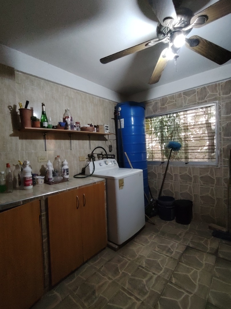 Planta baja: Sala, comedor, cocina remodelada en madera y granito, estudio o sala de estar, 1 baño. Área de lavandería, tanque.