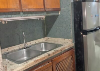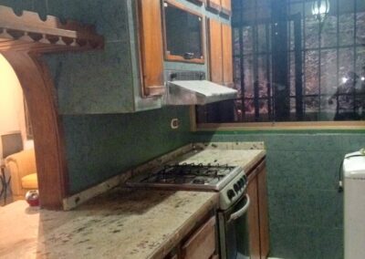 Cocina empotrada con gabinetes en madera.